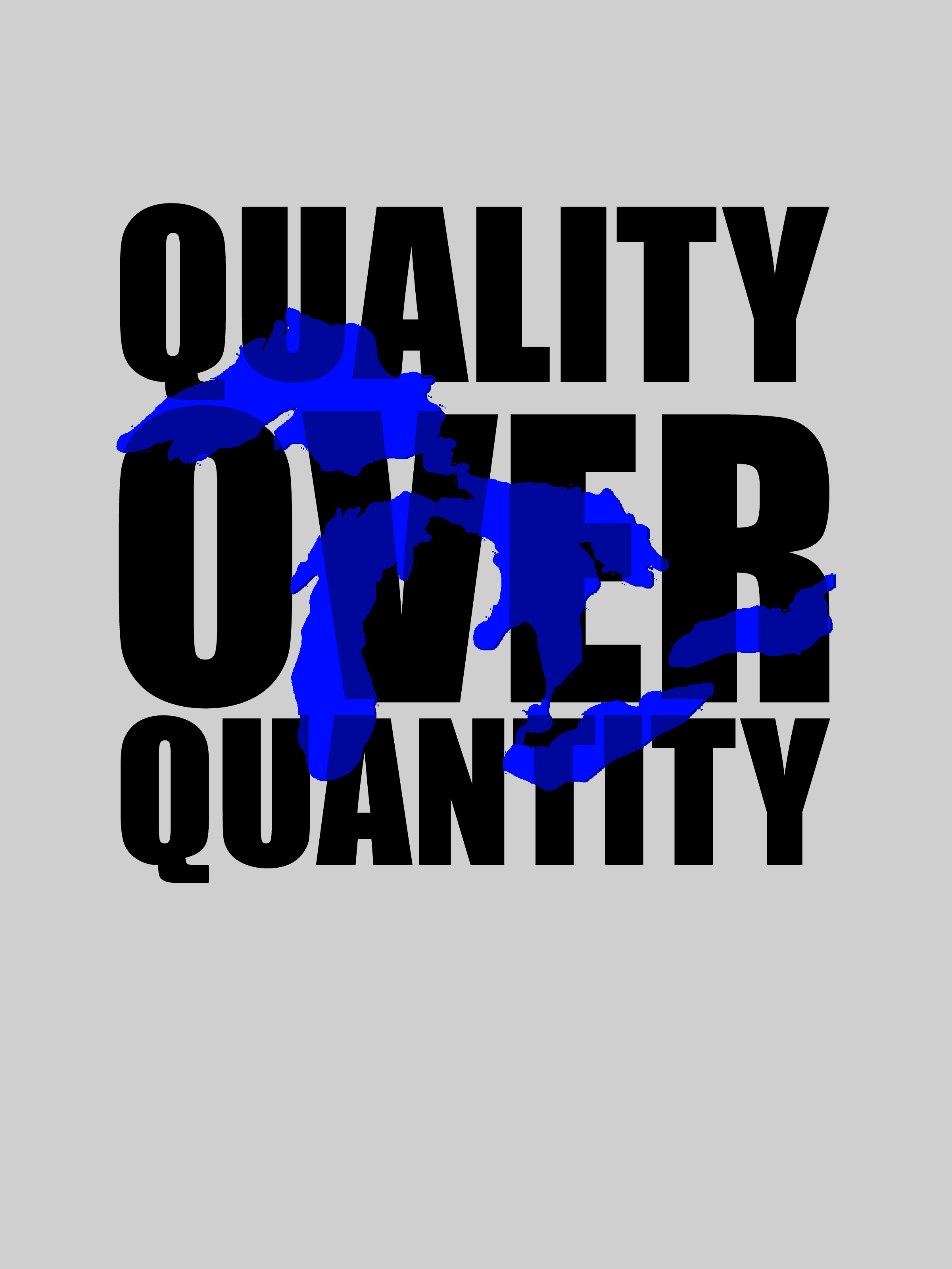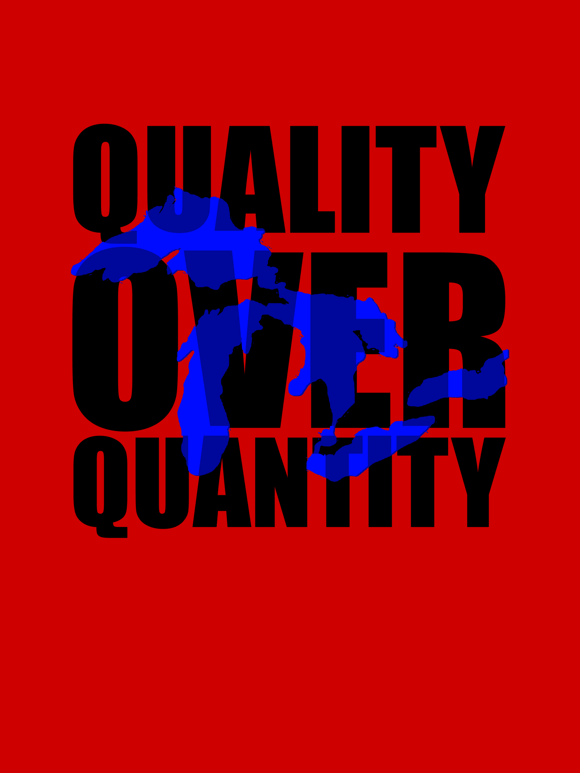 Tshirt with a map of the Great Lakes superimposed over the words "Quality Over Quantity"